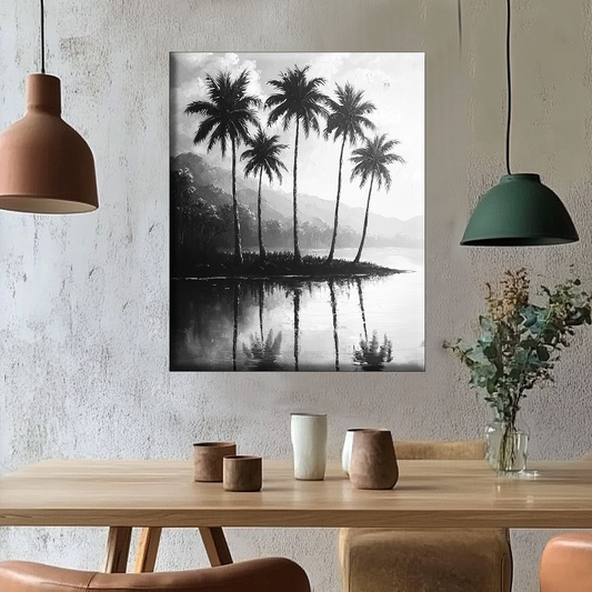 Palmiers sur un lac calme - peinture par numéros