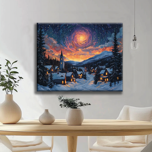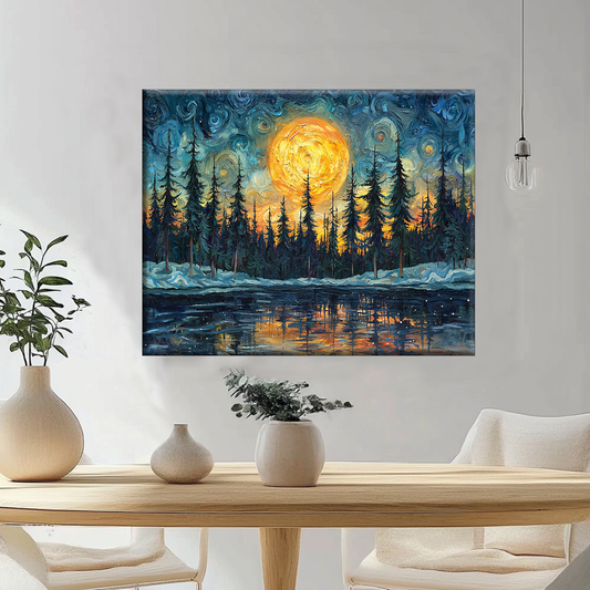 Sternennacht über dem Bergsee - Malen nach Zahlen
