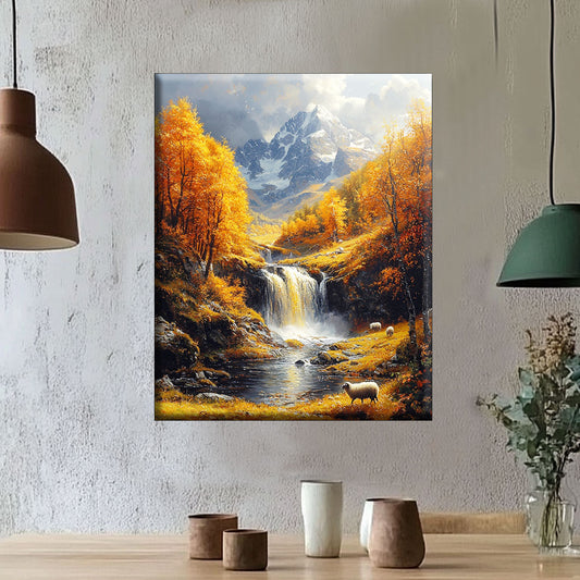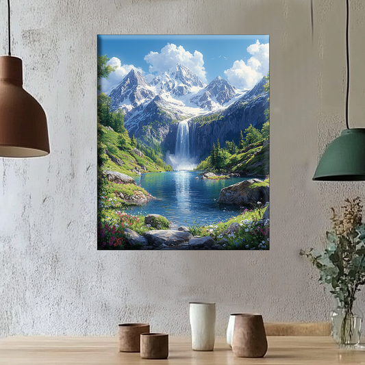 Bergzauber mit Wasserfall- Malen nach Zahlen