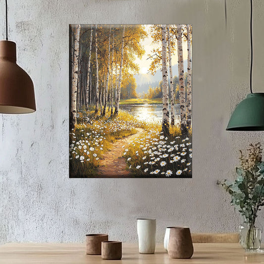Birken am ruhigen See - Diamond Painting