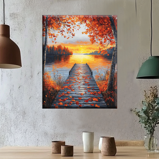 Blätter und Sonnenuntergang - Malen nach Zahlen