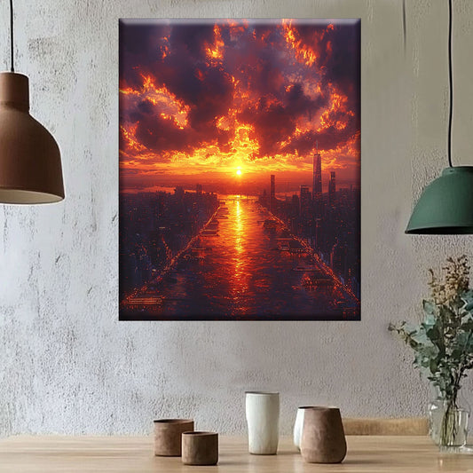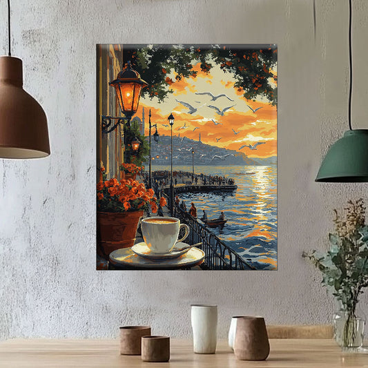 Sonnenaufgang am Meer - Malen nach Zahlen