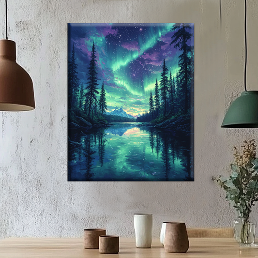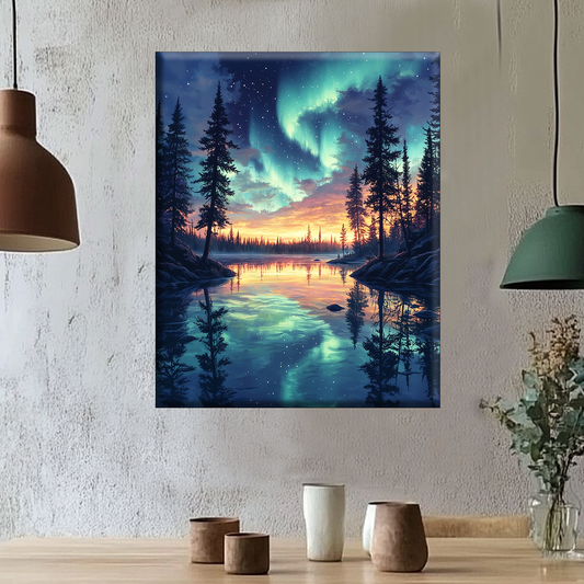 Polarlicht über dem See - Malen nach Zahlen
