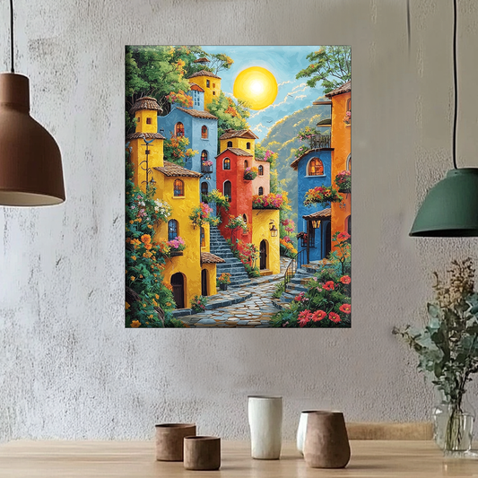 Sonnenglanz im Dorf - Malen nach Zahlen