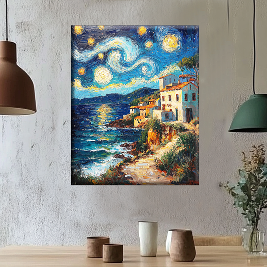 Sternennacht Dorf - Malen nach Zahlen