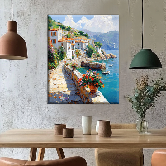 Mediterrane Bucht im Sonnenschein - Malen nach Zahlen