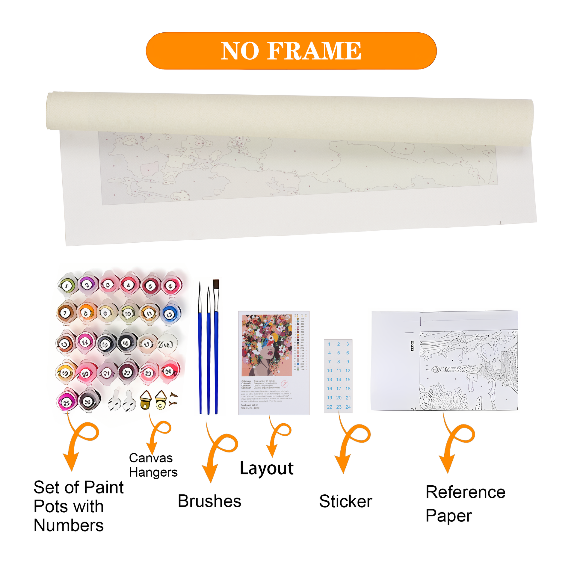 Découvrez tout ce dont vous avez besoin, soigneusement emballé dans notre ensemble de peinture par numéros. Avec tous les composants étiquetés et prêts à l’emploi, vous pouvez vous concentrer pleinement sur votre parcours artistique. Des couleurs vives aux pinceaux de précision, nous avons veillé à ce que rien ne s'interpose entre vous et votre toile. Adapté aussi bien aux artistes débutants qu'aux artistes expérimentés, cet ensemble offre une expérience de peinture pure et tranquille.
